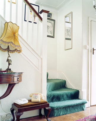 I love your photos! I especially love the lighting in the stair photo where it goes from having bright light to the top of the stairs where there is almost no light and shadows. I do wish there was something else your eye's could be drawn to like in the professional photos there is a lamp, an old phone, and photos on the wall. I think adding another aspect might bring your piece more alive. Good Job!